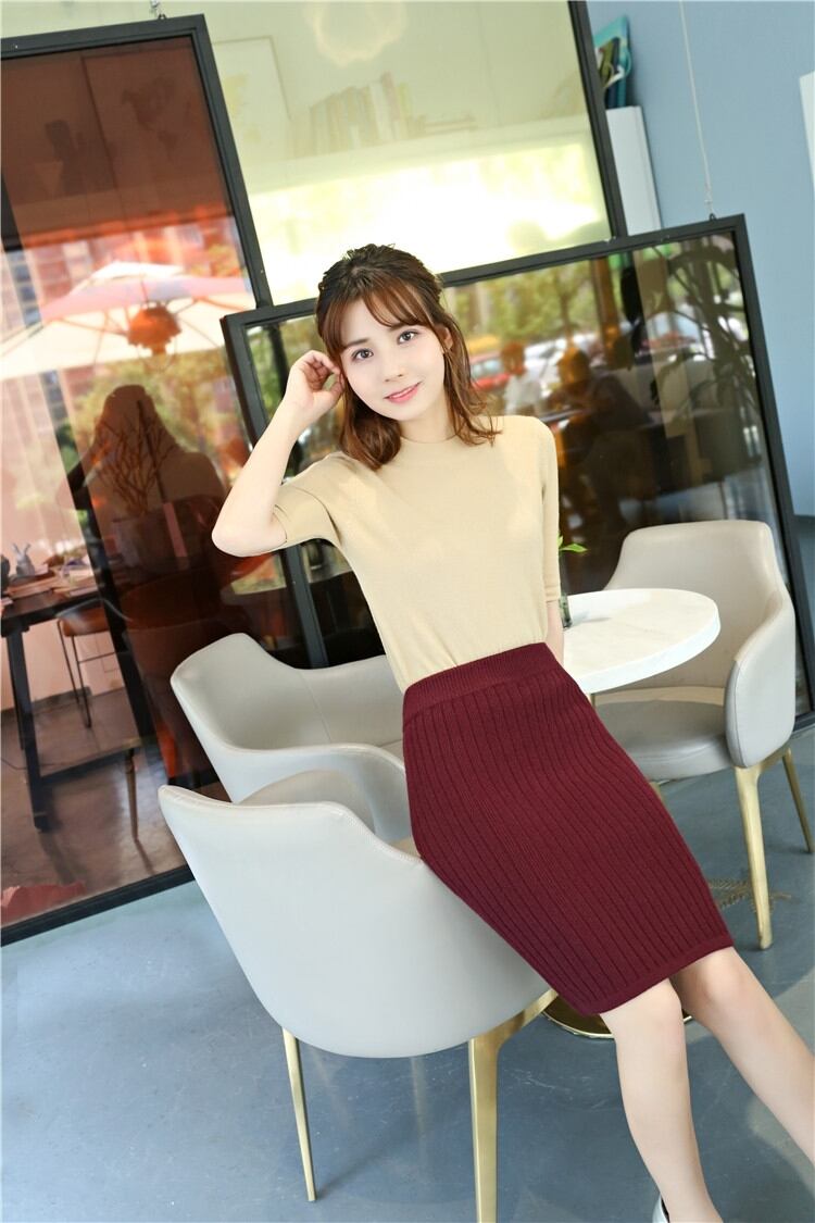 スカート ショート ハイウエスト 膝上 ライトグレー ブラック パープル キャメル ダークグレー タイトスカート 通勤 オフィス レディース 無地