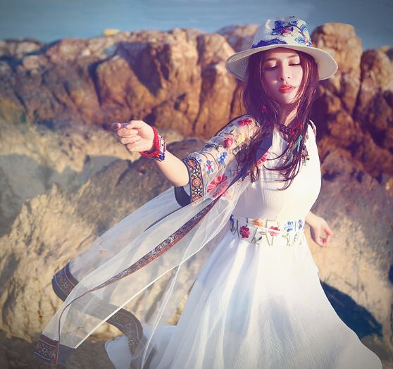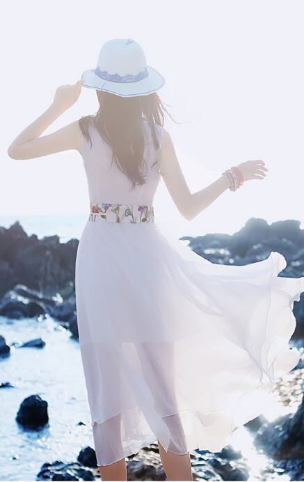 《入荷待ち》ワンピース ノースリーブ シフォン ボヘミアン ヴィンテージ 夏 リゾート 可愛い レディース ウエストマーク フレア ナチュラル フェミニン