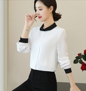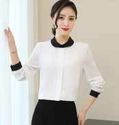 《入荷待ち》ブラウス シャツ 5分袖 丸襟 バイカラ― シフォン 無地 シンプル 可愛い オフィスカジュアル 上品 レディースファッション