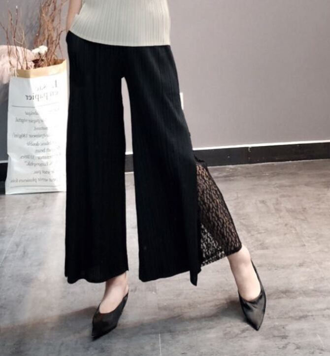 《入荷待ち》ワイドパンツ スリット レース 上品 ワンサイズ カラーバリエーション 無地 シンプル 可愛い 夏 レディース
