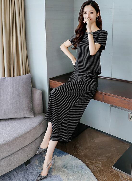 即納 数量限定 在庫あるだけ セール 超特価 セットアップ ツーピース トップス カットソー ワイドパンツ 半袖 ストライプ柄 大きいサイズ 夏 シンプル 大人 レディース キレイめ
