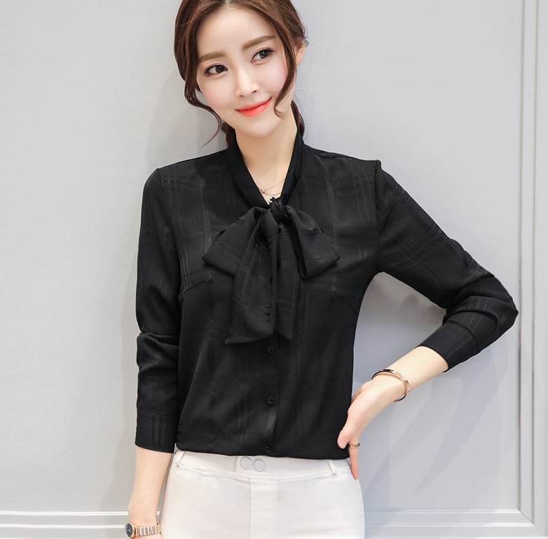 《入荷待ち》大きいサイズ シャツ 長袖 リボン チェック柄 ソリッドカラー オフィスカジュアル 可愛い シンプル レディースファッション 通勤 大人可愛い オシャレ