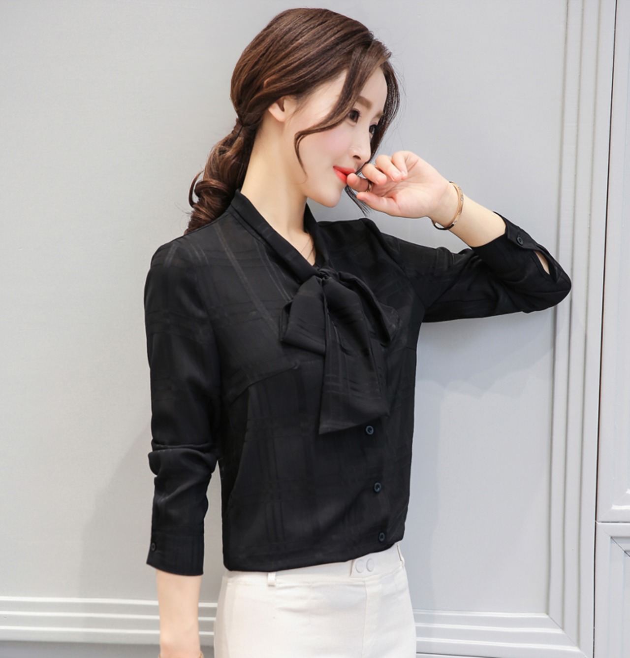 首元のリボンが小顔効果も発揮してくれます◎