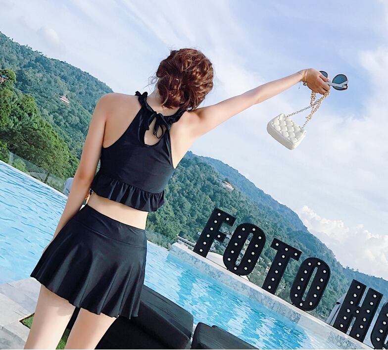 《入荷待ち》水着 ビキニ パンツ ブラック 可愛い リボン 夏 海 リゾート ビーチ 大人 レディース ホルターネック シンプル スイムウェア