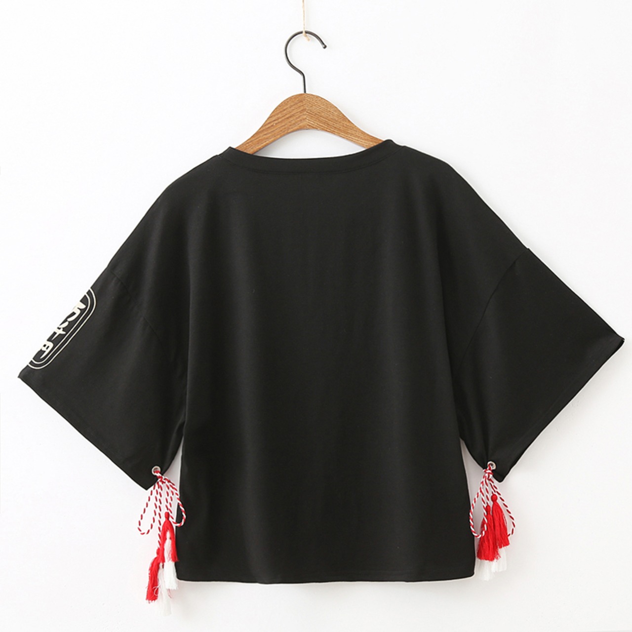 《入荷待ち》トレンド Tシャツ 不思議 可愛い 夢かわ イチゴ 苺 ストロベリー タッセル てんにょ 日本語 ラウンドネック 半袖 オーバーサイズ ビッグシルエット 春 夏