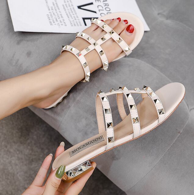 《入荷待ち》 サンダル フラット スタッズ ハード 可愛い カラーバリエーション サイズ豊富 小さいサイズ 大きいサイズ お洒落 夏 レディース