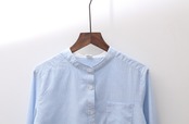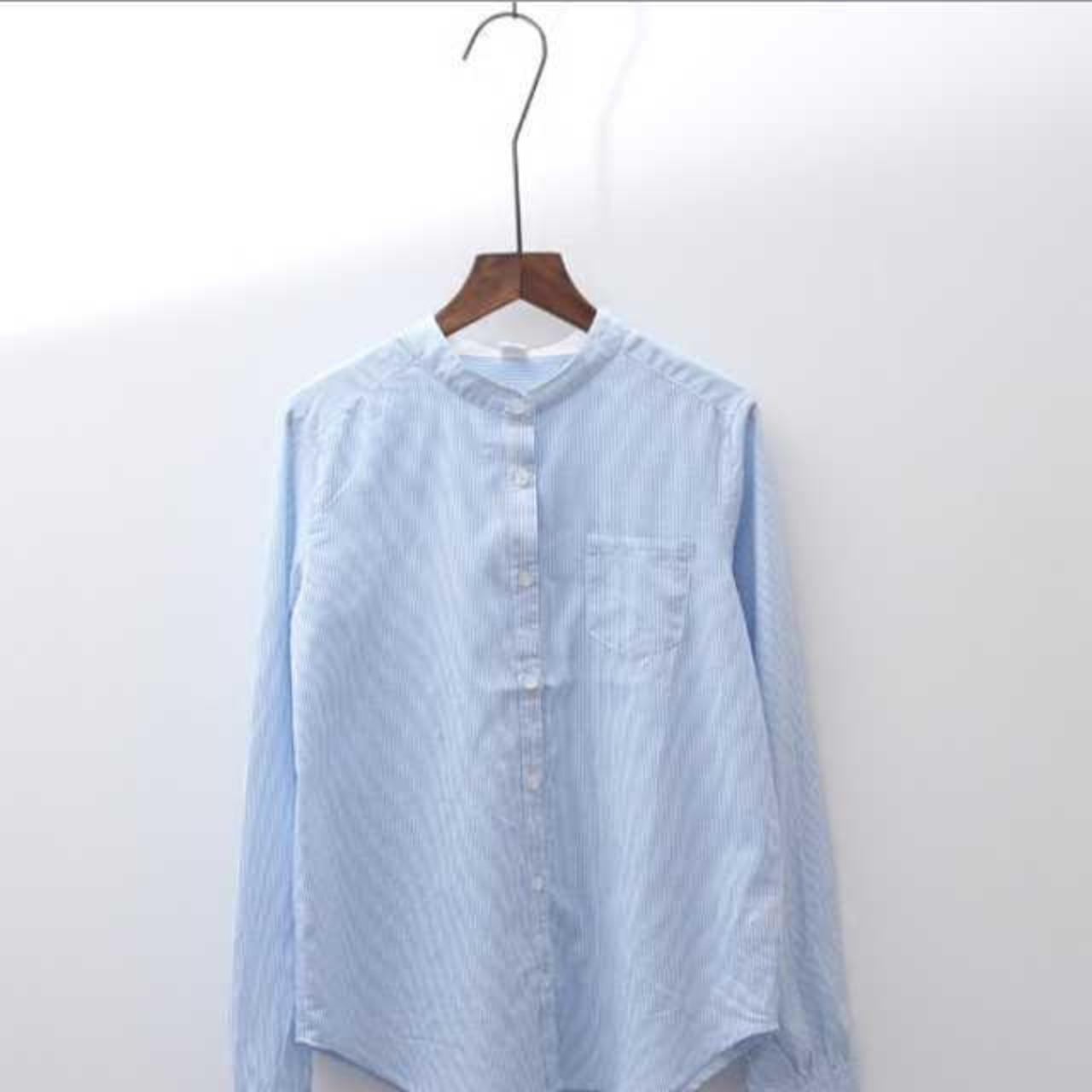 《入荷待ち》ノーカラー シャツ ストライプ 爽やか ブラック×ホワイト ブルー×ホワイト レッド×ホワイト 長袖 春 夏 通勤 オフィス お出かけ シンプル カジュアル