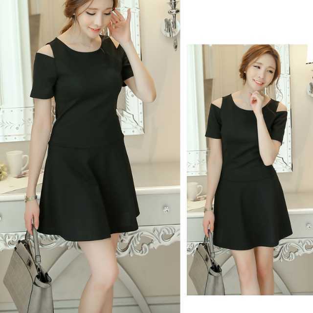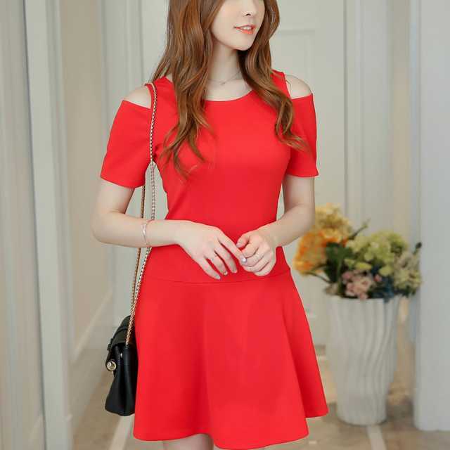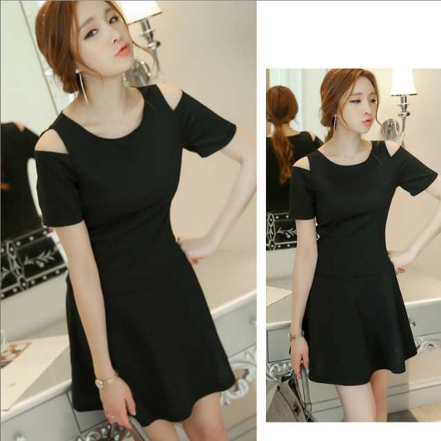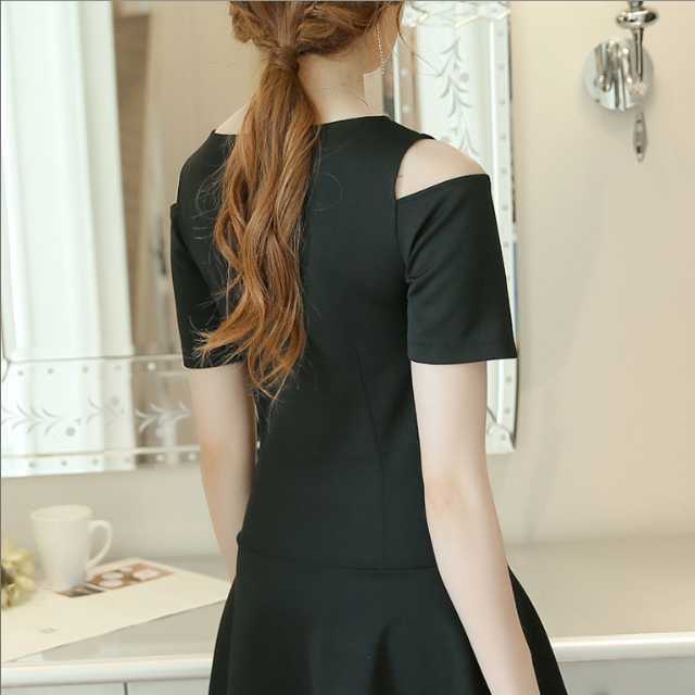 《入荷待ち》ワンピース ミニ丈 ミニドレス ショルダーカット オープンショルダー オフショルダー 半袖 シンプル 無地 結婚式 二次会 お呼ばれ デート ディナー 可愛い フレア