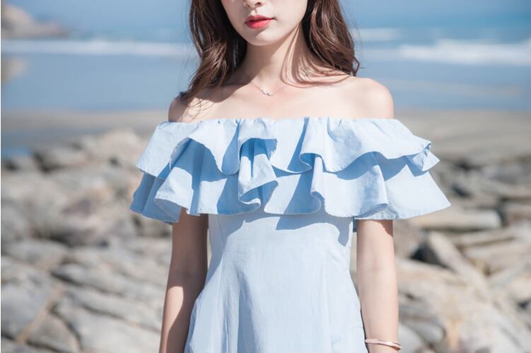 ボリュームのあるティアードフリルがキュートなミニワンピは爽やかブルーでとびきりキュートに着なして♡