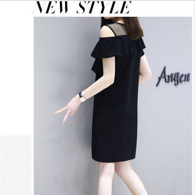 大きいサイズ ワンピース オフショルダー オープンショルダー メッシュ 透け感 オシャレ 大人女子 ミニ丈 膝丈 シンプル 無地 こなれ フリル ラウンドネック Vネック 異素材ミックス