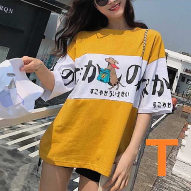 《入荷待ち》Tシャツ オーバーサイズ ビッグシルエット 半袖 ラウンドネック 大きいサイズ ゆったり 英字プリント 羽 恐竜 怪獣 ポップ パンク ロック 星 スター 星座 キラキラ トラ 動物 こなれ オシャレ ストリート 裏原 日本語 不思議 個性的 ブラック ホワイト イエロー レッド カラフル 外国人 夏 オルチャン 韓国