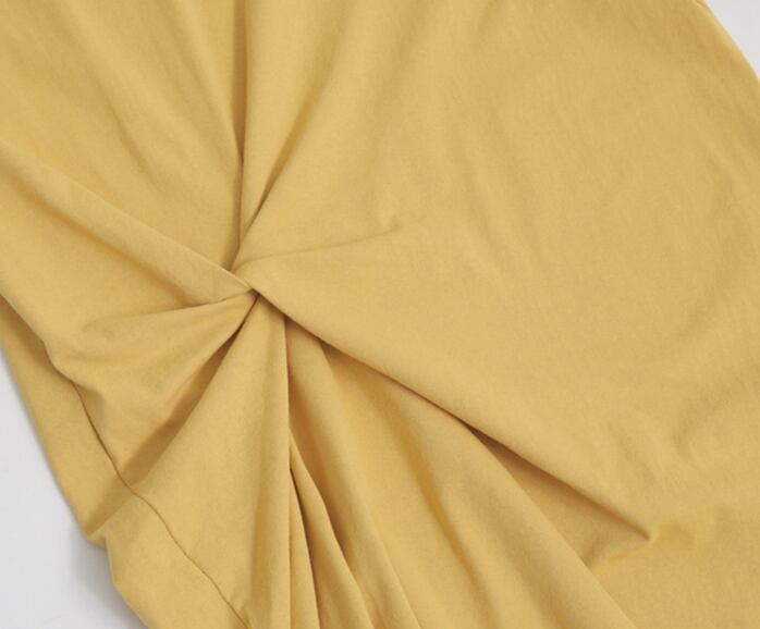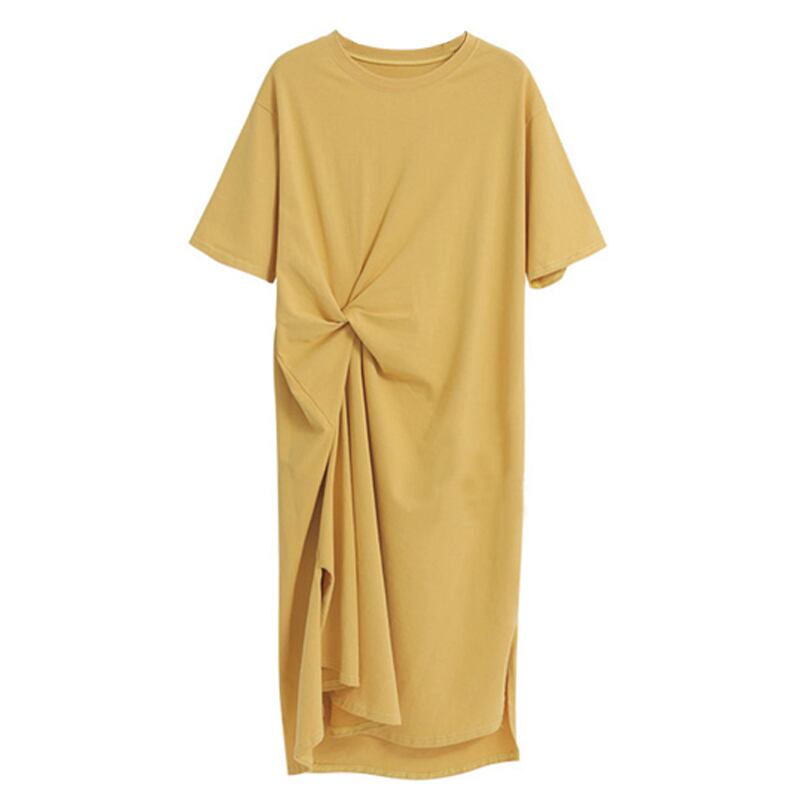 《再入荷》ワンピース Tシャツ ラウンドネック 半袖 シンプル 無地 大人女子 ギャザー スリット ロングテール レイヤード 春 夏 楽ちん オシャレ こなれ ミディ丈 ミモレ丈