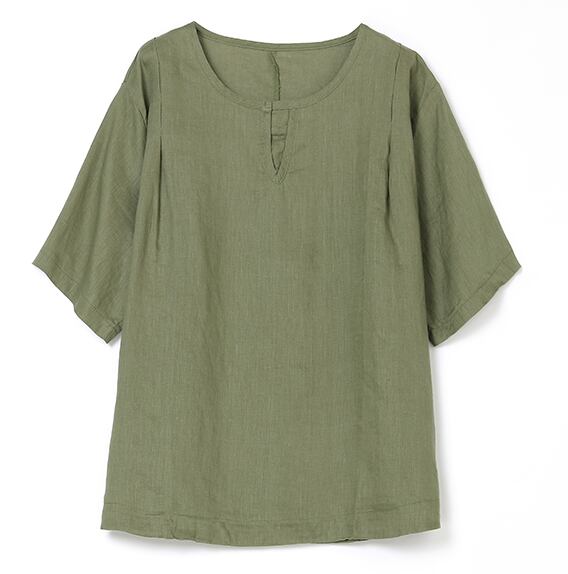 トップス Tシャツ カットソー ラウンドネック リネン カジュアル 無地 シンプル お洒落 トレンド 夏 5分袖 レディース