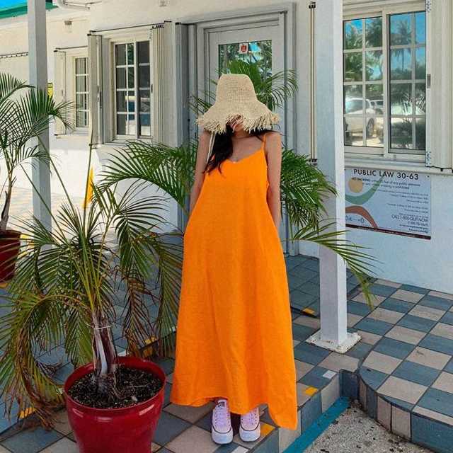 鮮やかなオレンジが魅力!大人のナチュラルワンピースです。