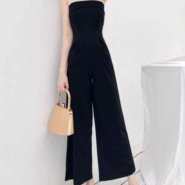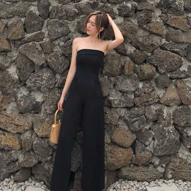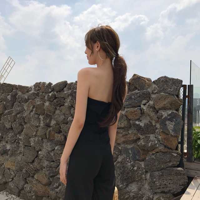 《入荷待ち》つなぎ ジャンプスーツ オールインワン ベアトップ ポケット カジュアル キレイめ 足長効果 美スタイル スタイルアップ ワイドパンツ 夏 肌見せ 大胆 大人可愛い レディース 大人女子 韓国 オルチャン トレンド シンプル 無地