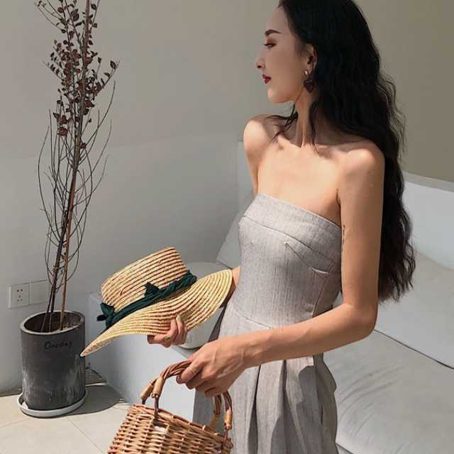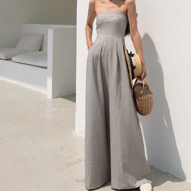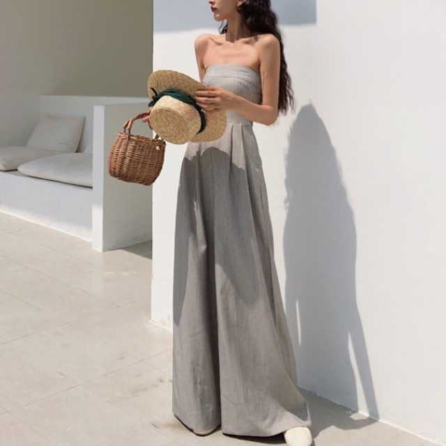 《入荷待ち》ジャンプスーツ ワイドパンツ トレンド つなぎ 夏 大胆 ベアトップ オープンショルダー オフショルダー ハイウエスト ポケット シンプル 無地 大人女子 キレイめ カジュアル リゾート デート 女子会 オシャレ こなれ 夏 レディース 韓国 オルチャン