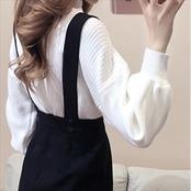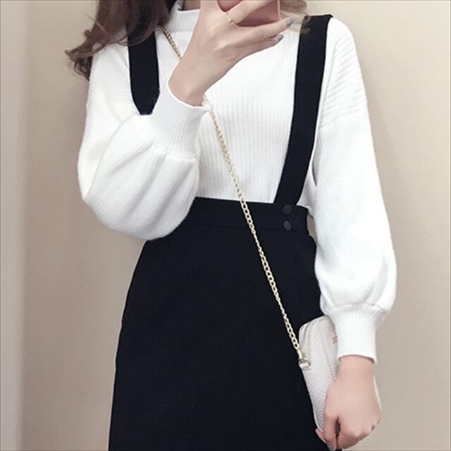 セーター 秋 新作 タートルネック ゆったり シンプル カジュアル オフィス シンプル ホワイト パフスリーブ 長袖 ガーリー デート 大人女子 リブニット