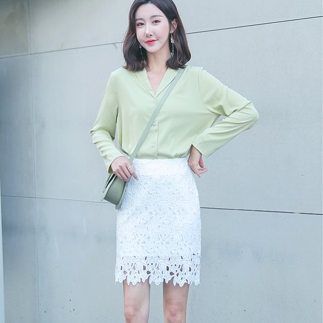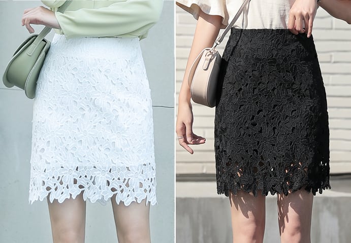 小さいサイズ 全2色 タイトスカート ミニ丈 レース オフィスカジュアル お洒落 フェミニン 20代 30代 シンプル 刺繍 レディース 白 黒