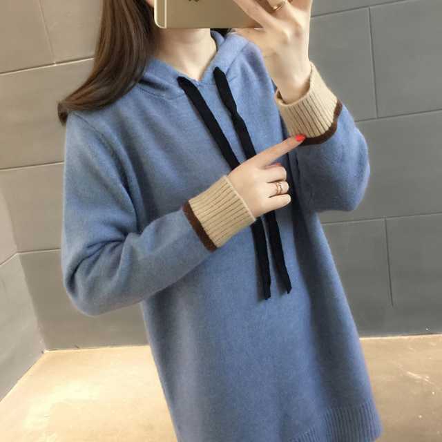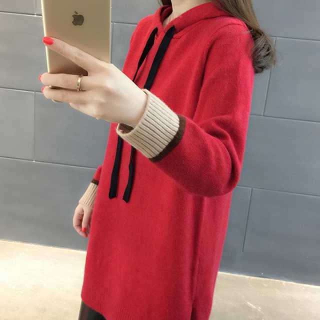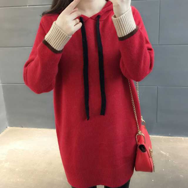 《入荷待ち》チュニック トップス パーカー ワンピース フード付 スリット あったか 秋 冬 ツートーン バイカラー こなれ カジュアル ゆったり 楽ちん 大人可愛い デイリーコーデ ルームウェア リニックスウェア