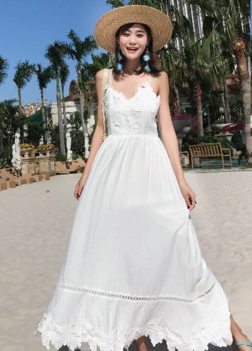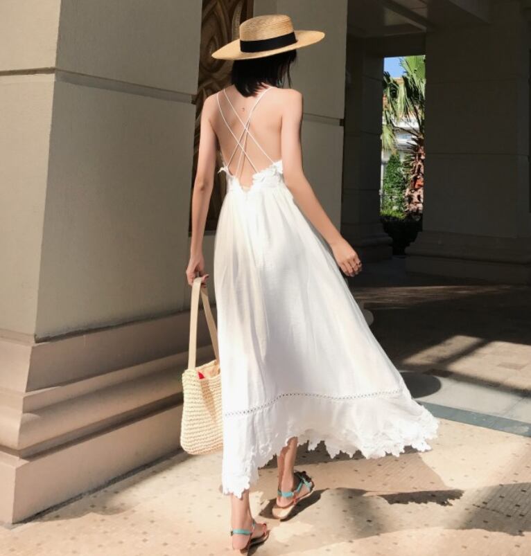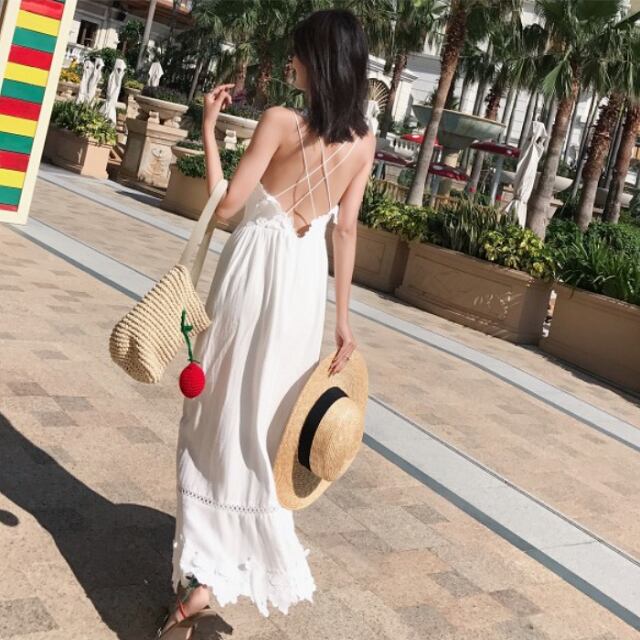 即納 在庫限り 数量限定 大特価 セール プチプラ ワンピース キャミソール バッククロス シフォン ロング丈 ホワイト フレア 夏 リゾート 海 ビーチ 海外 旅行 セレブ お洒落 シンプル 可愛い レディース