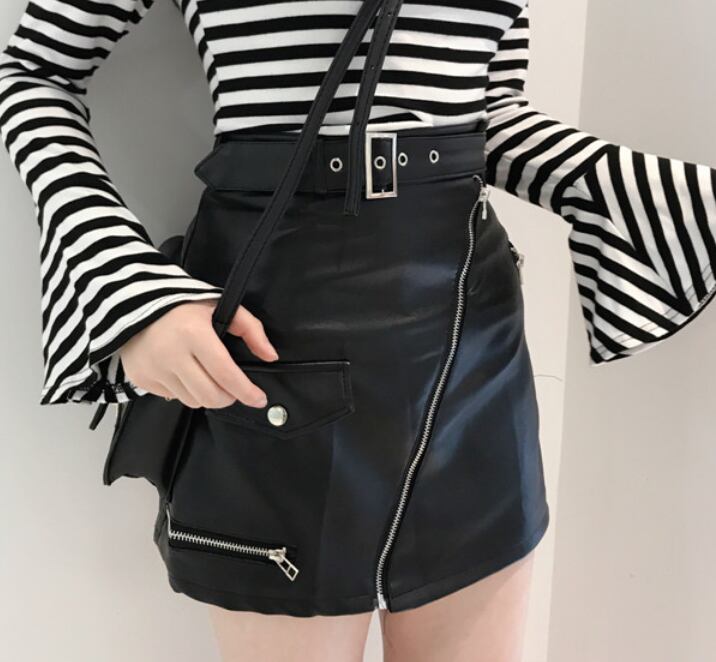 《入荷待ち》スカート レザー フェイク ジッパー ブラック ミニ丈 可愛い 甘辛コーデ Aライン お洒落 ロック パンク カジュアル 20代 レディース