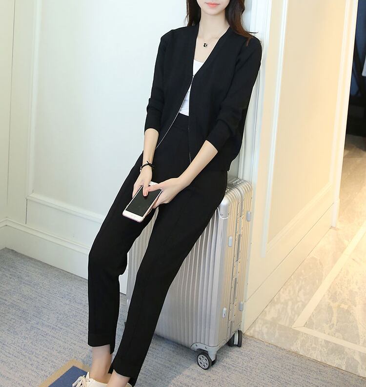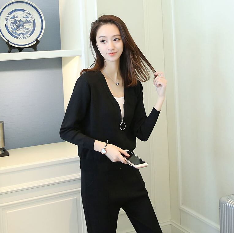 《入荷待ち》 新作 セットアップ カーディガン ニット 長袖 フロントチャック パンツ スラックス ロング丈 無地 シンプル オフィス 可愛い 秋 冬 お洒落 大人 20代 30代 40代 レディース