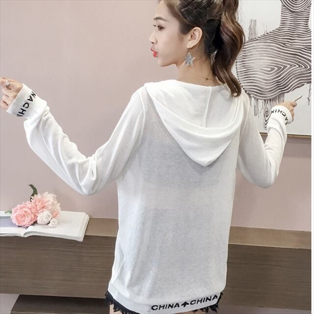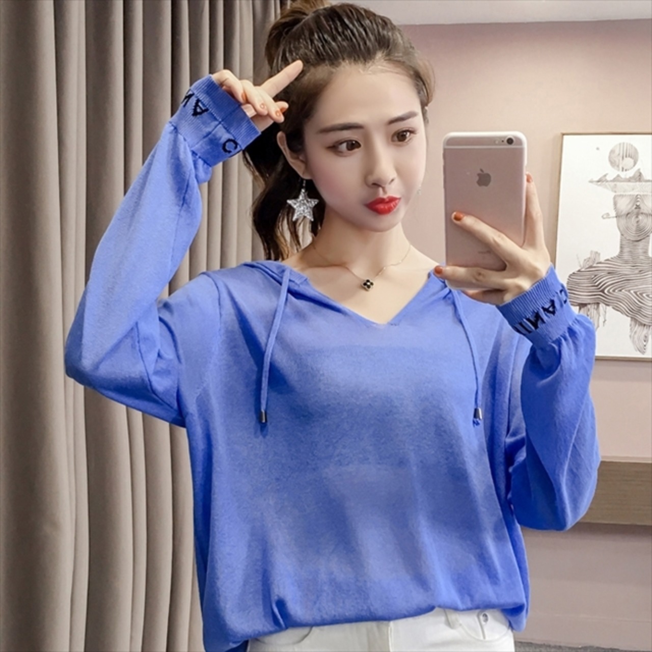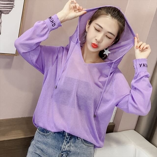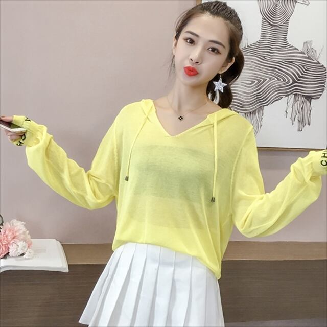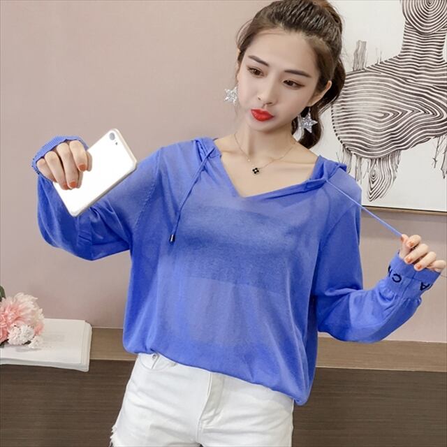 《入荷待ち》大きいサイズ 全6色 春 秋 新作 トップス シルクニット Vネック フード付 長袖 無地 日焼け対策 パーカー デイリーコーデ アウトドア 透け感 ポップ 可愛い キュート カジュアル