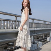 ワンピース ノースリーブ 夏 新作 オフホワイト/ホワイト ロングスカート レース 透け感 Aライン デート お呼ばれ 大人可愛い