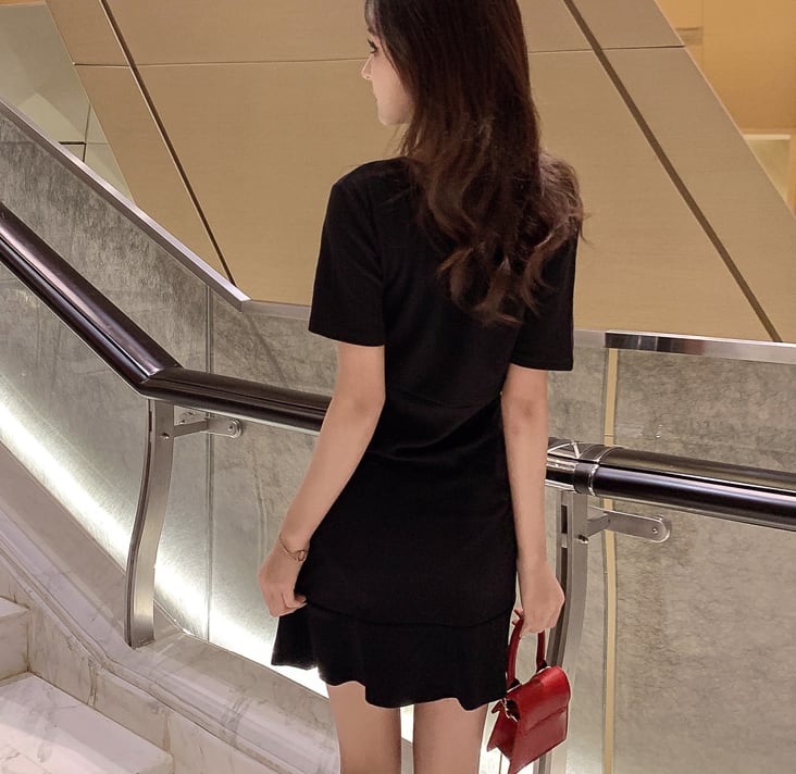 《入荷待ち》 ワンピース ミニ丈 Vネック 半袖 スポーティ ラフ シンプル 無地 カジュアル セクシー 20代 可愛い 夏 レディース