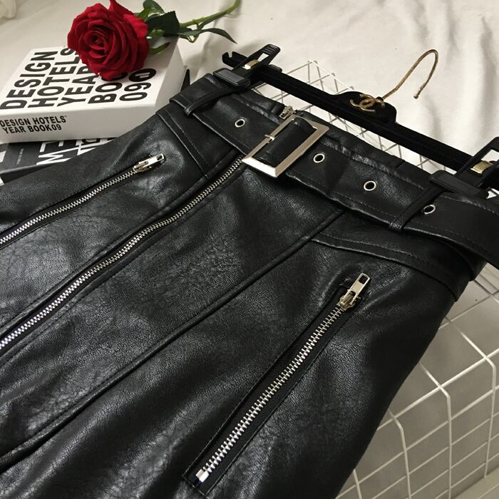 スカート レザー ショート丈 ミニ スリム セクシー ポケット ハイウエスト ファスナー ストリート カジュアル お出かけ 秋 冬 トレンド 大人 カッコいい レディース パンク ロック 甘辛ミックス 大きいサイズ