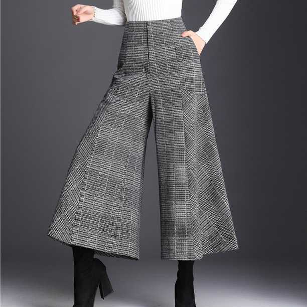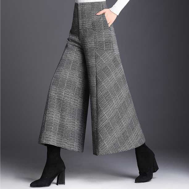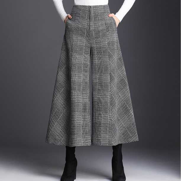 大特価 セール 即納 在庫限り 売り尽くし 大きいサイズ ワイドパンツ パンツスカート 9分丈 グレー 格子 チェック 新作 秋 冬 ウール 体形カバー カジュアル デート
