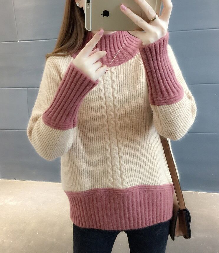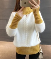 《入荷待ち》 セーター トップス ニット バイカラー スリム ハイネック 秋 冬 長袖 スリーブ シンプル カジュアル デート お出かけ 大人可愛い レディース