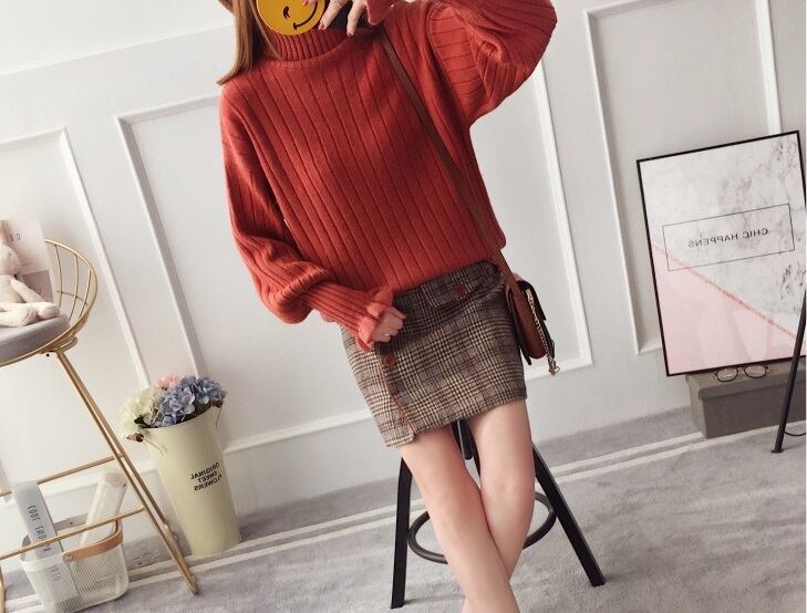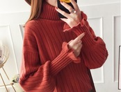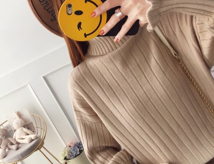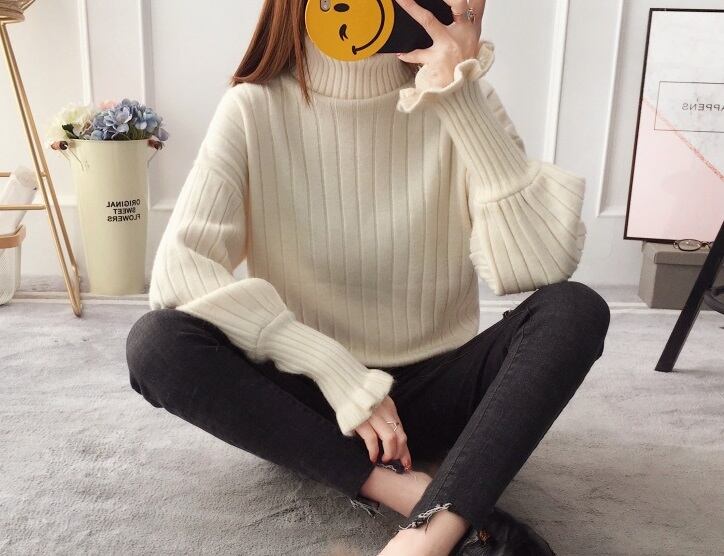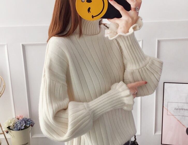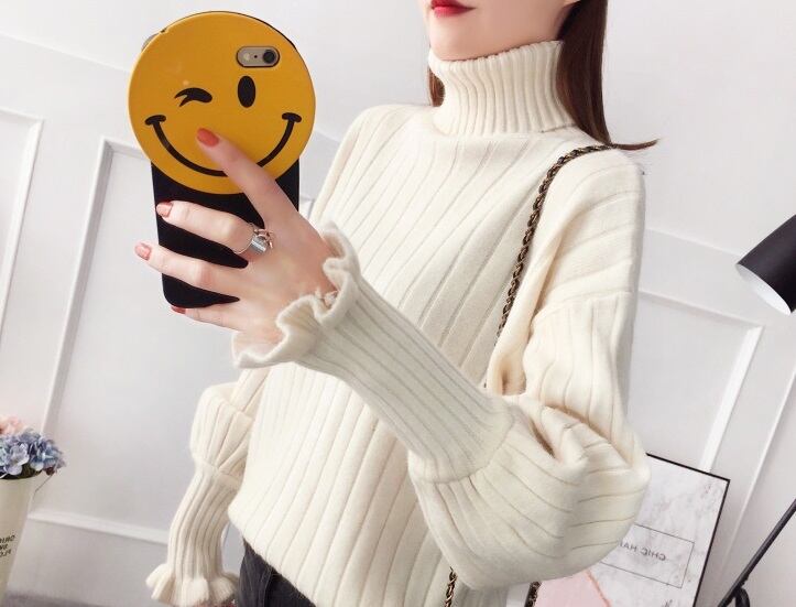 《再入荷》ニット 全4色 セーター トップス フリル ハイネック 秋 冬 長袖 通勤 通学 オシャレ 大人可愛い ストレート ゆったり 暖かい シンプル カジュアル パフスリーブ フリル