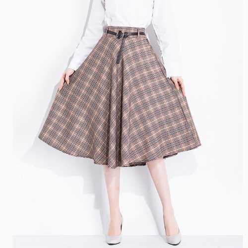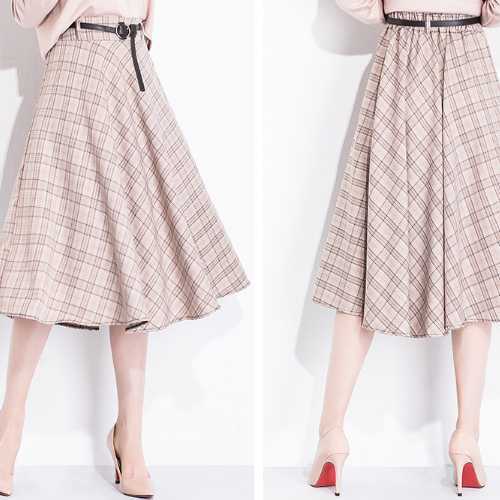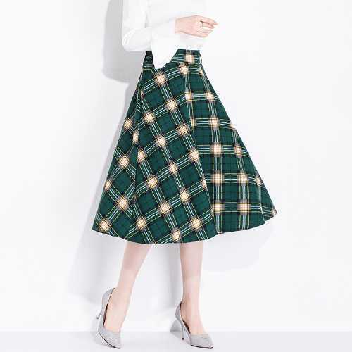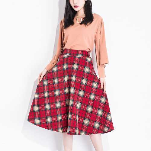 《入荷待ち》スカート チェック柄 ひざ丈 ミディアム丈 レトロ 新作 秋 冬 ハイウエスト アプリコット グリーン レッド ブラウン グレー レース 上品 シック スタイリッシュ オフィス カジュアル 綺麗 レディース