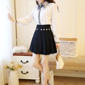 《再入荷》セットアップ ブラウス フレアスカート フリル ハイウエスト ツーピーススカート リボン ボタン 水玉風 新作 夏 秋 大人 上品 ガーリー 可愛い レディースファッション モノトーン 白黒 バイカラー