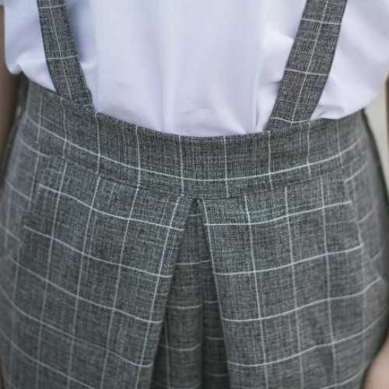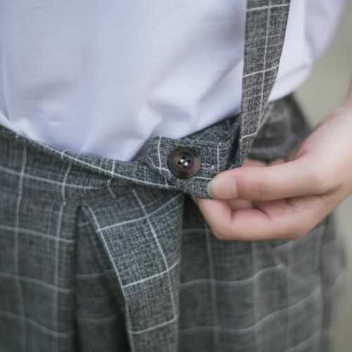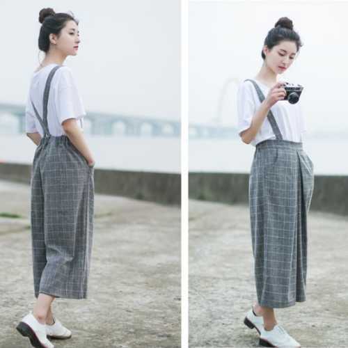 《入荷待ち》ワイドパンツ ストラップ クロップド チェック柄 格子柄 レトロ リネン 通勤 オフィス 通学 カジュアル 海 お出かけ かわいい ワンサイズ グレー シンプル レディース