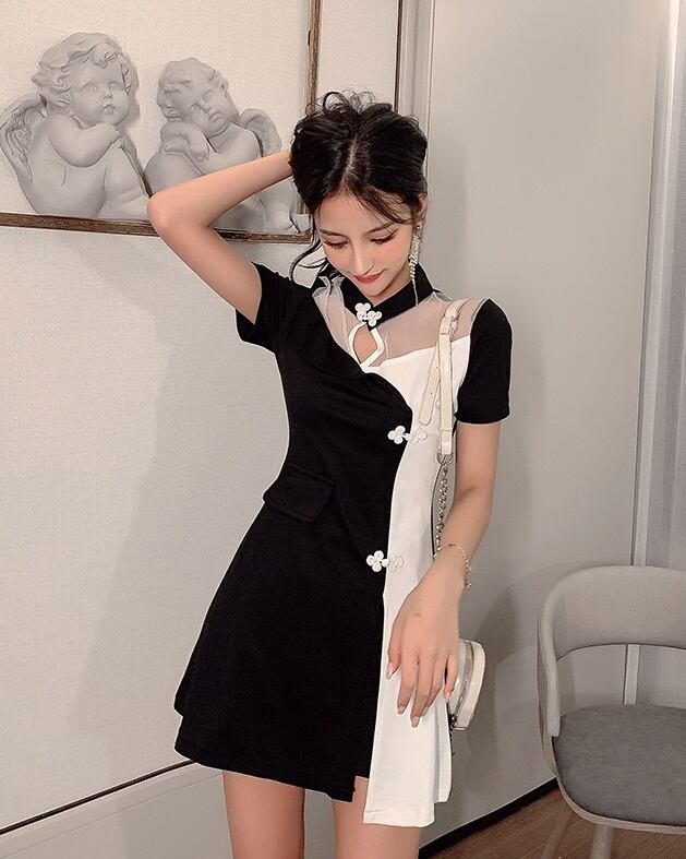 《入荷待ち》ワンピース セットアップ メッシュブラウス ツーピーススーツ ミニ丈 花柄ボタン 新作 夏 秋 大人 上品 オシャレ セクシー レディースファッション バイカラー お呼ばれ 2次会