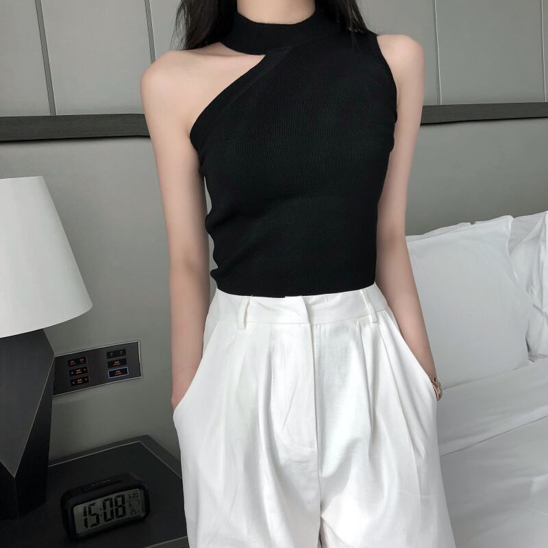トップス ノースリーブ ハンギングネック ニット セクシー スリム レディース おしゃれ デート お出かけ 大人 カッコいい