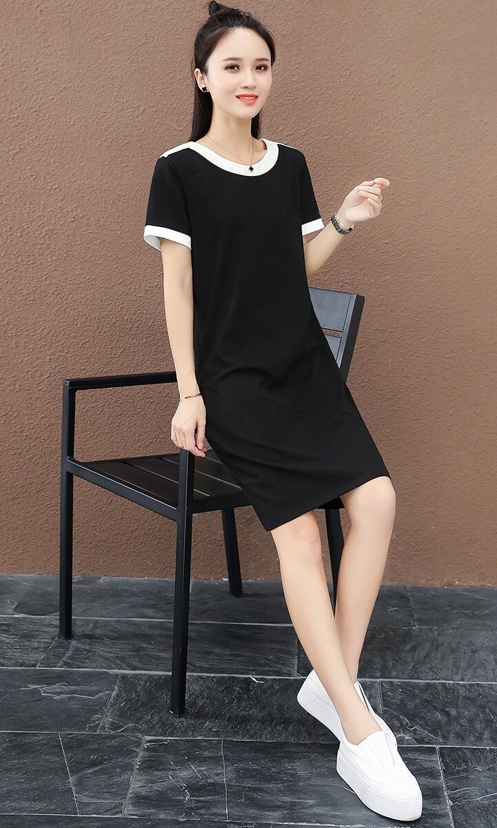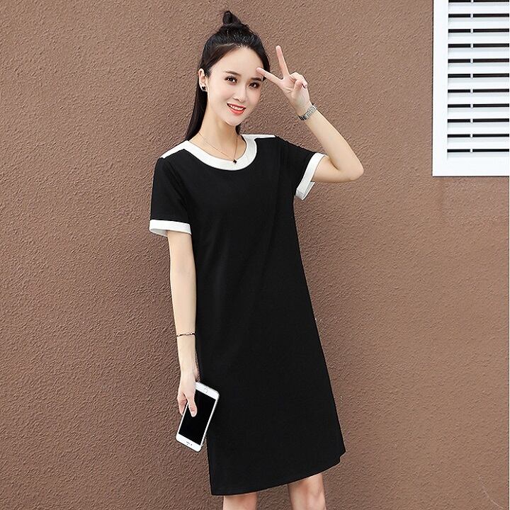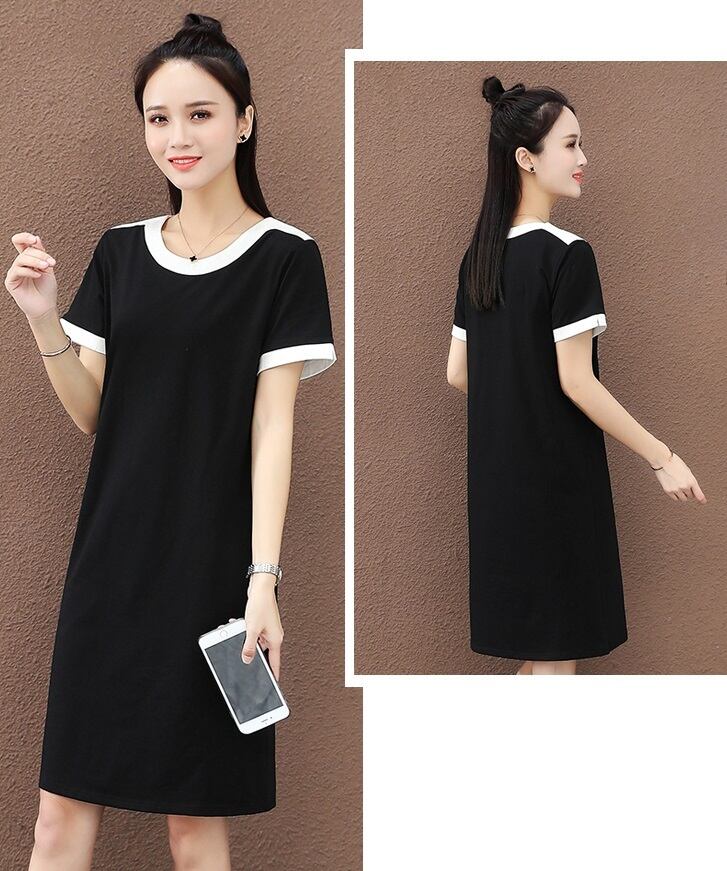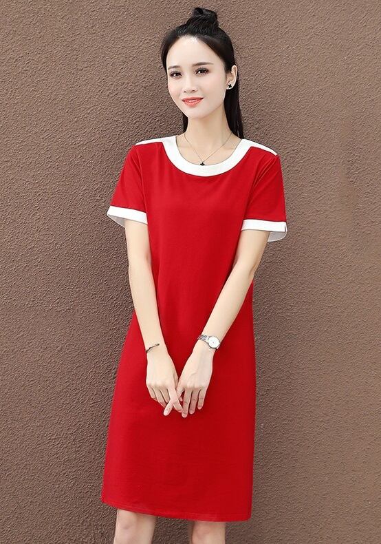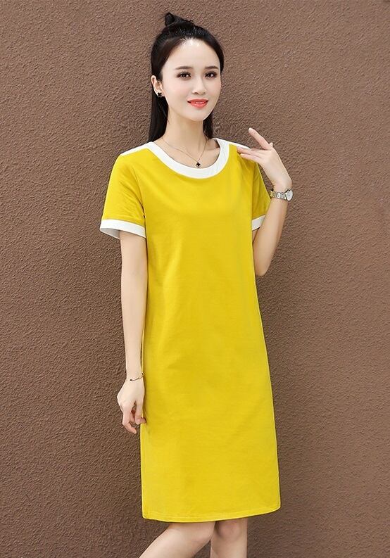 《入荷待ち》 新作 ロングTシャツ 半袖 ワンピース ラウンドネック スリーブ ミディ丈 無地 シンプル オシャレ 上品 夏 レディース 大きいサイズ