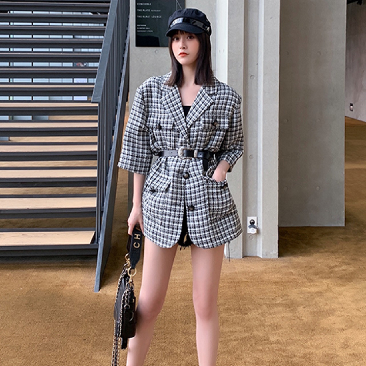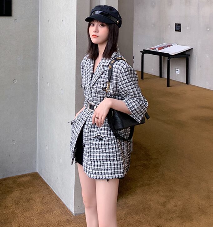 《入荷待ち》アウター ジャケット ホワイト×ブラック チェック柄 7分袖 襟 スタイリッシュ 秋 冬 新作 20代 30代 可愛い カジュアル 大人 レディース