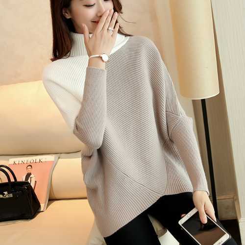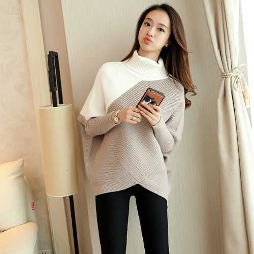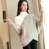 バイカラー ツートン タートルネックセーター アシンメトリー ラフ カジュアル フェミニン 大人 かわいい あったか デート 女子会 長袖 秋 冬 レディース