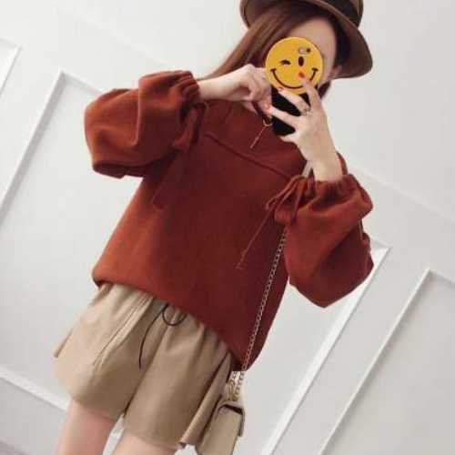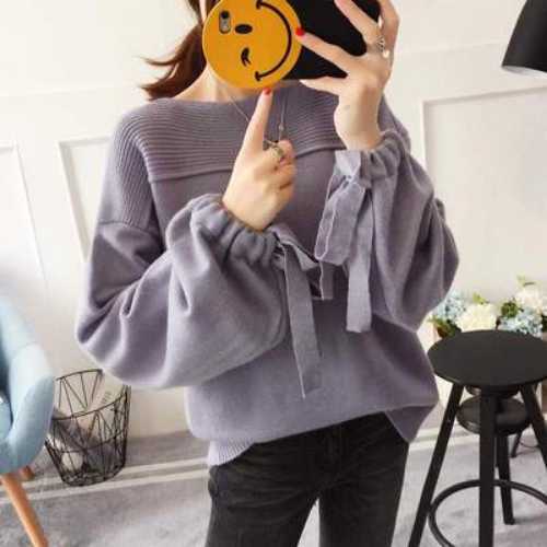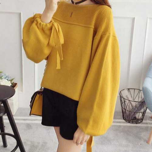 《再入荷》袖コンシャス ボートネックセーター バルーンスリーブ リボン リブ 無地 ラフ カジュアル 大人 かわいい あったか レトロ 長袖 秋 冬 レディース ボリューム袖