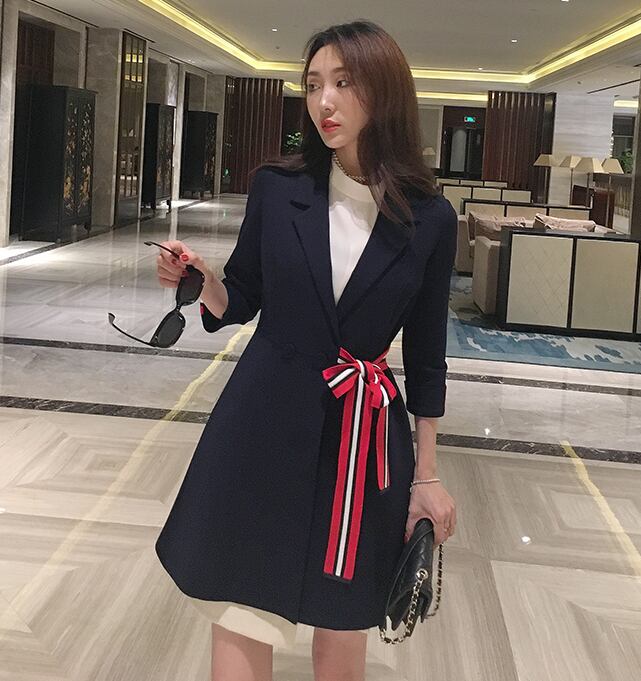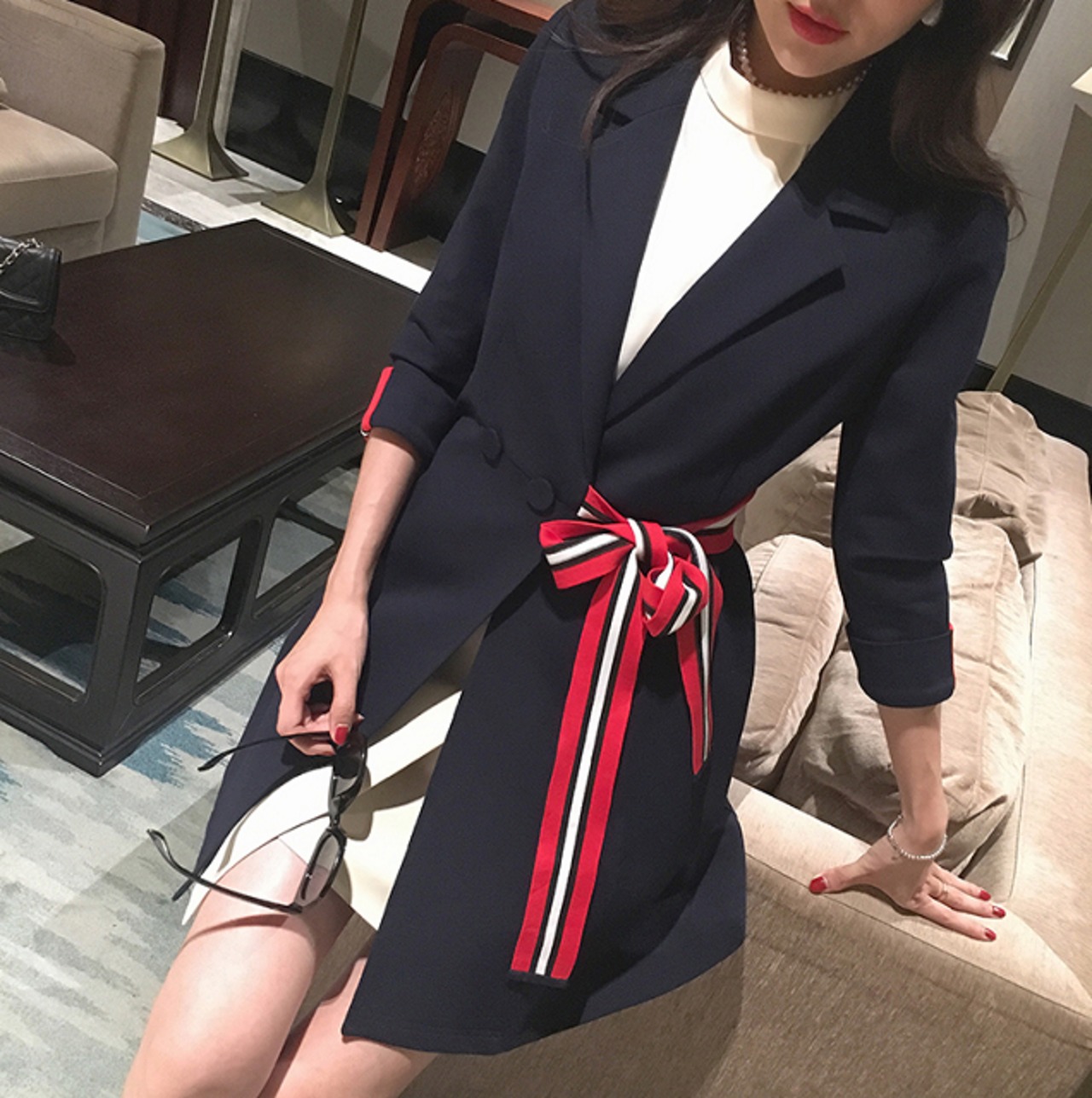 《入荷待ち》秋 冬 新作 アウター ジャケット ウエストリボン ネイビー スタイリッシュ レトロ パーティー 二次会 女子会 レディース