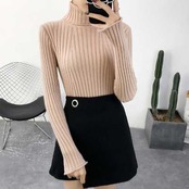 秋カラー リブタートルニット タートルネック スリムフィット 大人 かわいい セクシー あったか フェミニン無地 秋 冬 新作 レディース