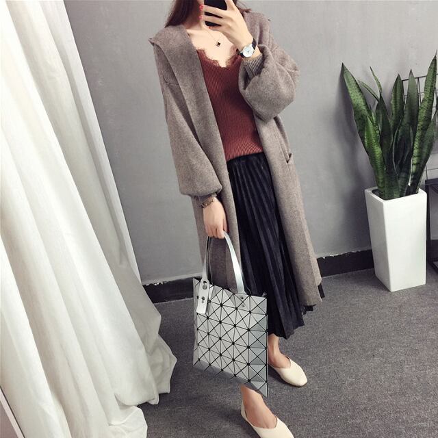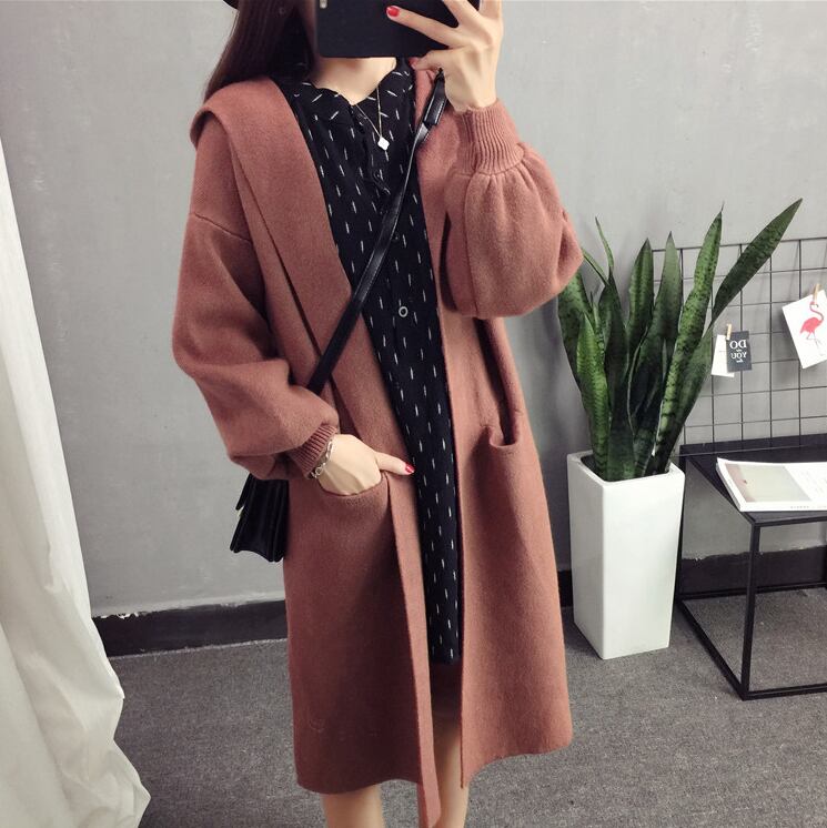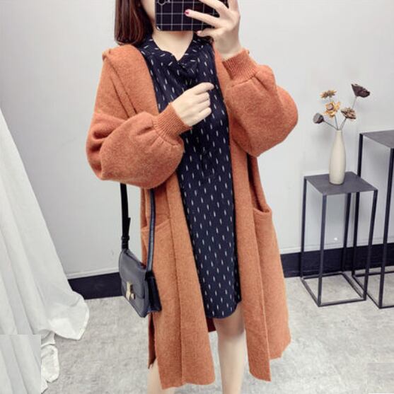 《入荷待ち》全6色 アウター ニット セーター ガウン カーディガン 無地 シンプル フード ビックシルエット 秋 冬 新作 可愛い オータム レディース バルーンスリーブ ボリューム袖 袖コンシャス