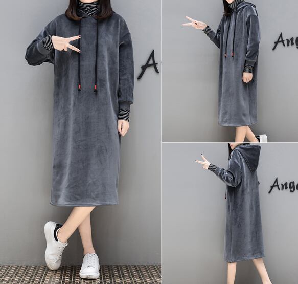 《入荷待ち》ワンピース スウェード パーカー ミディ丈 フード ビックシルエット グレー ブラック カジュアル スポーティー お洒落 シンプル 無地 レディース