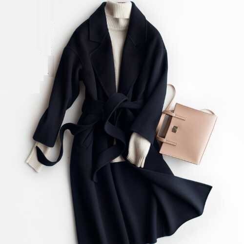 ロングコート ウール 全5色 カラー リボン ロープ シンプル 無地 ベーシック 通勤 大人 かっこいい スリム フィット レディース 秋 冬