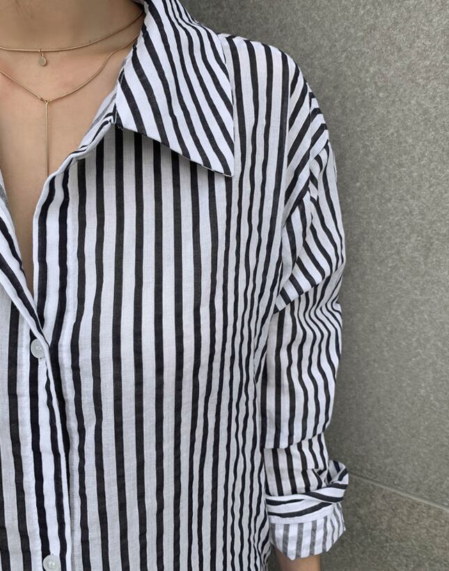 シャツ ロング丈 スリット ストライプ柄 ソリッドカラー 無地 長袖 襟 トレンド 可愛い 大人 シンプル レディース オフィスカジュアル 通勤 大人可愛い 総柄 爽やか