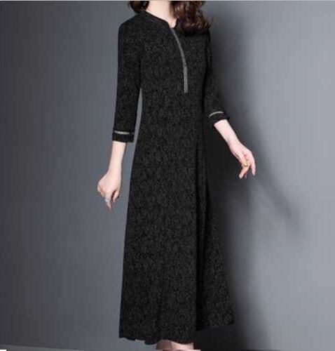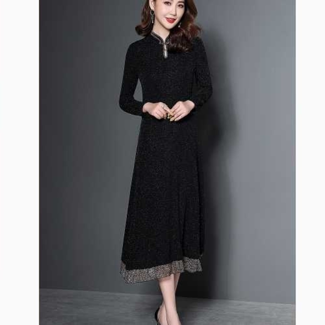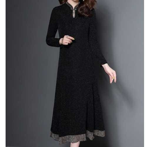 《入荷待ち》 チャイナドレス ドレス ワンピース 大きいサイズ ハイネック ロング丈 ハイネック スタンドカラー ロング丈 ミドル丈 ミディ丈 ブラック シルバー ラメ Aライン フレア 秋 お呼ばれ パーティー 大人 レディース