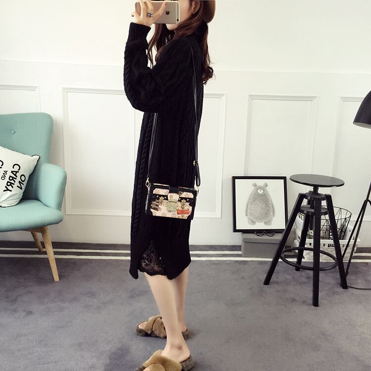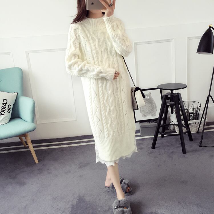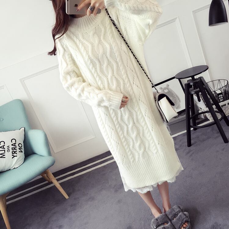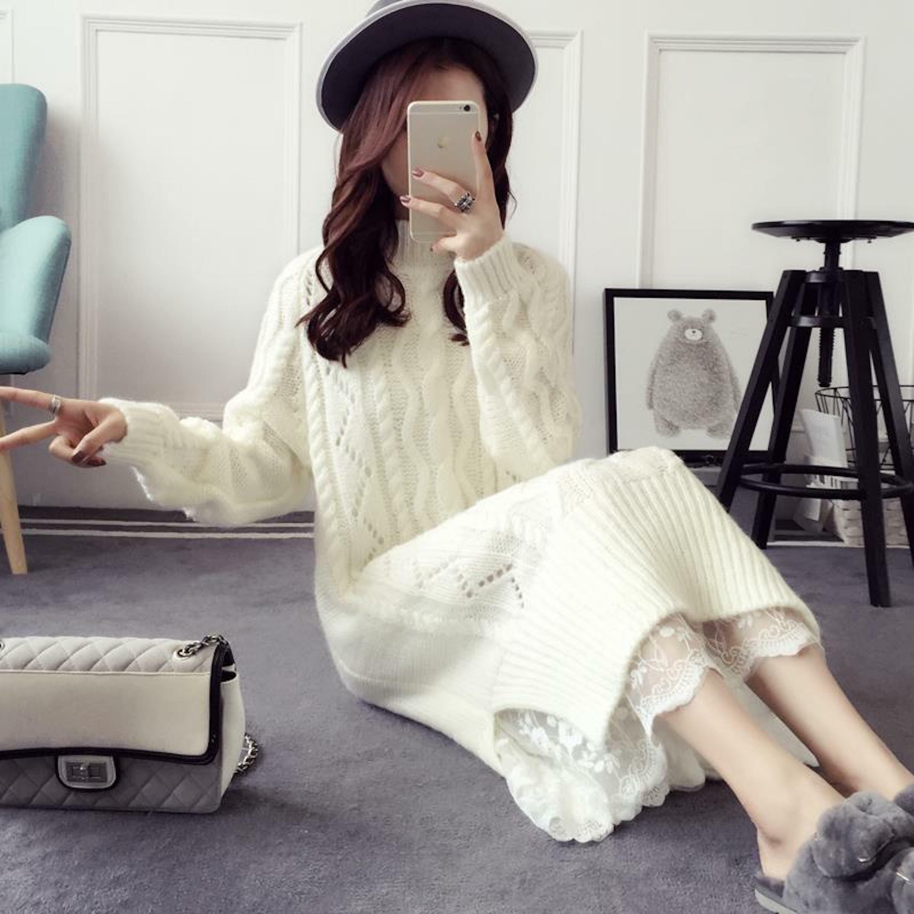 即納 ラス1 在庫限りの大特価 セール 全3色 ロングセーターワンピース 白 黒 トレンド ざっくり編み スカート ハイネック フェミニンスタイル ガーリー シンプル 大人可愛い 膝下丈